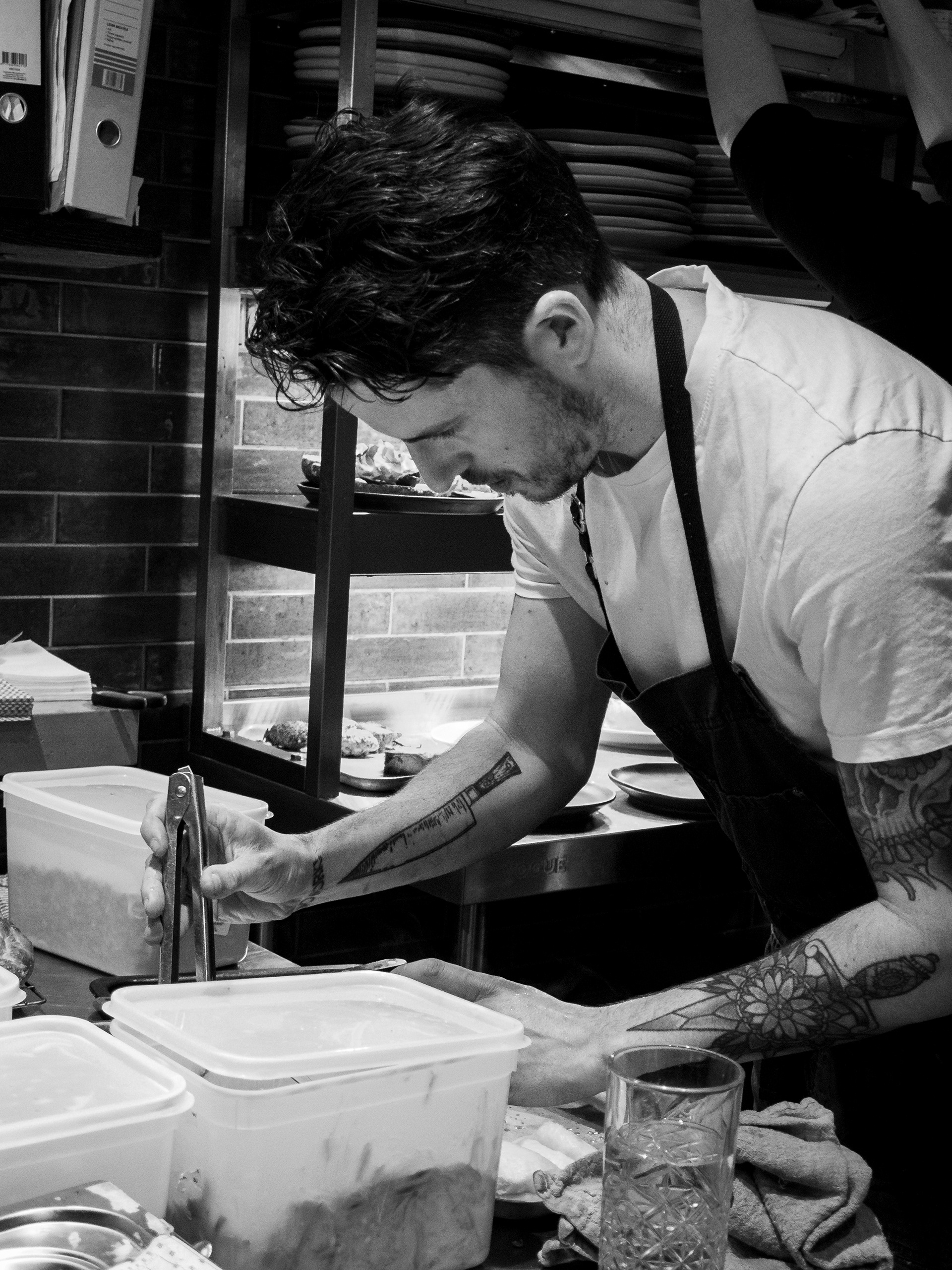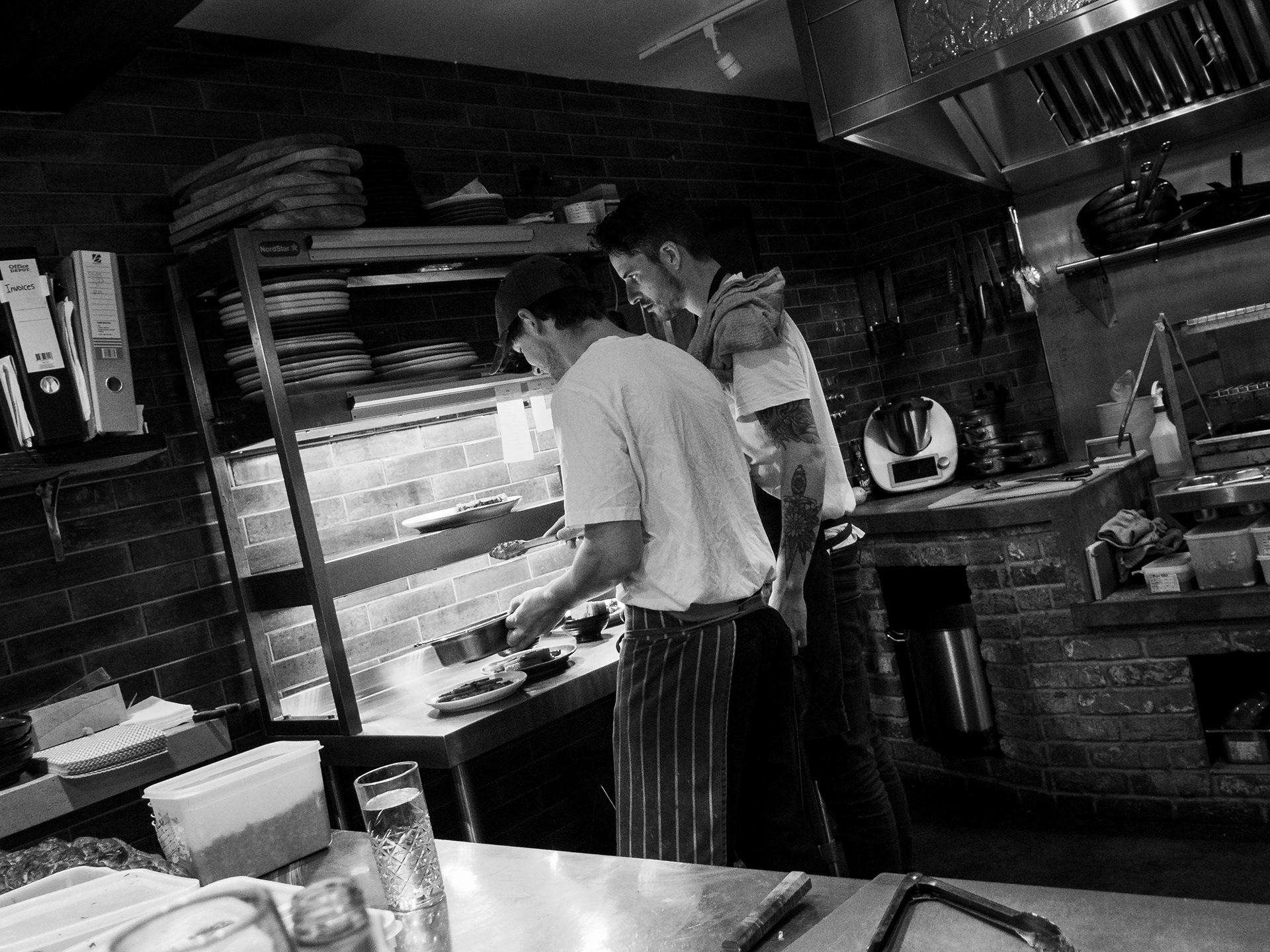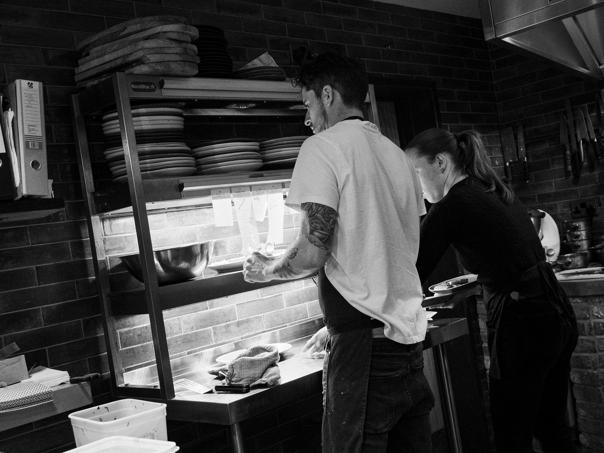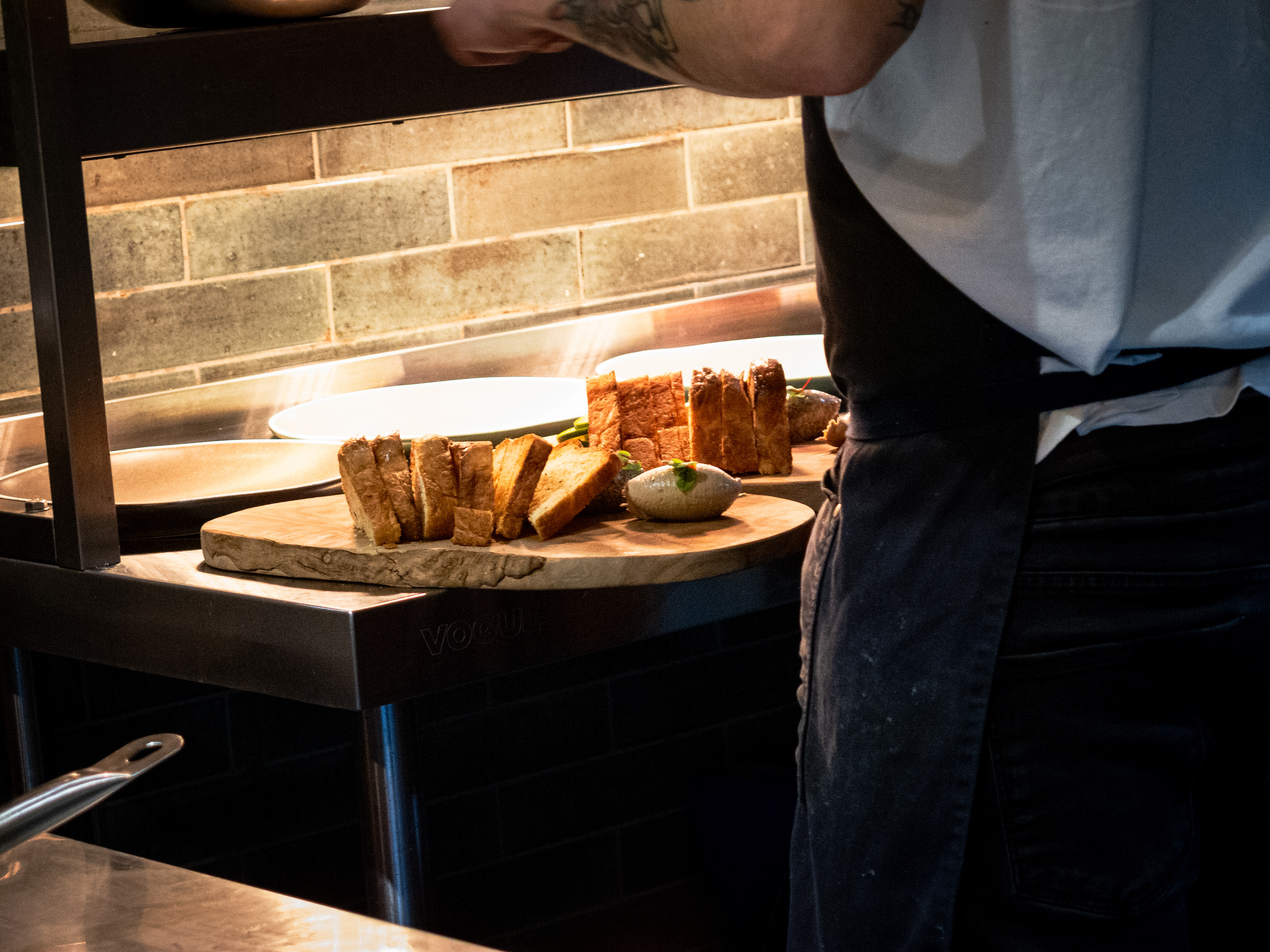A set taken from my seat at the Chef's table at the Horseshoe, Mildenhall, Wiltshire. Excellent food and a great view of a well run kitchen.