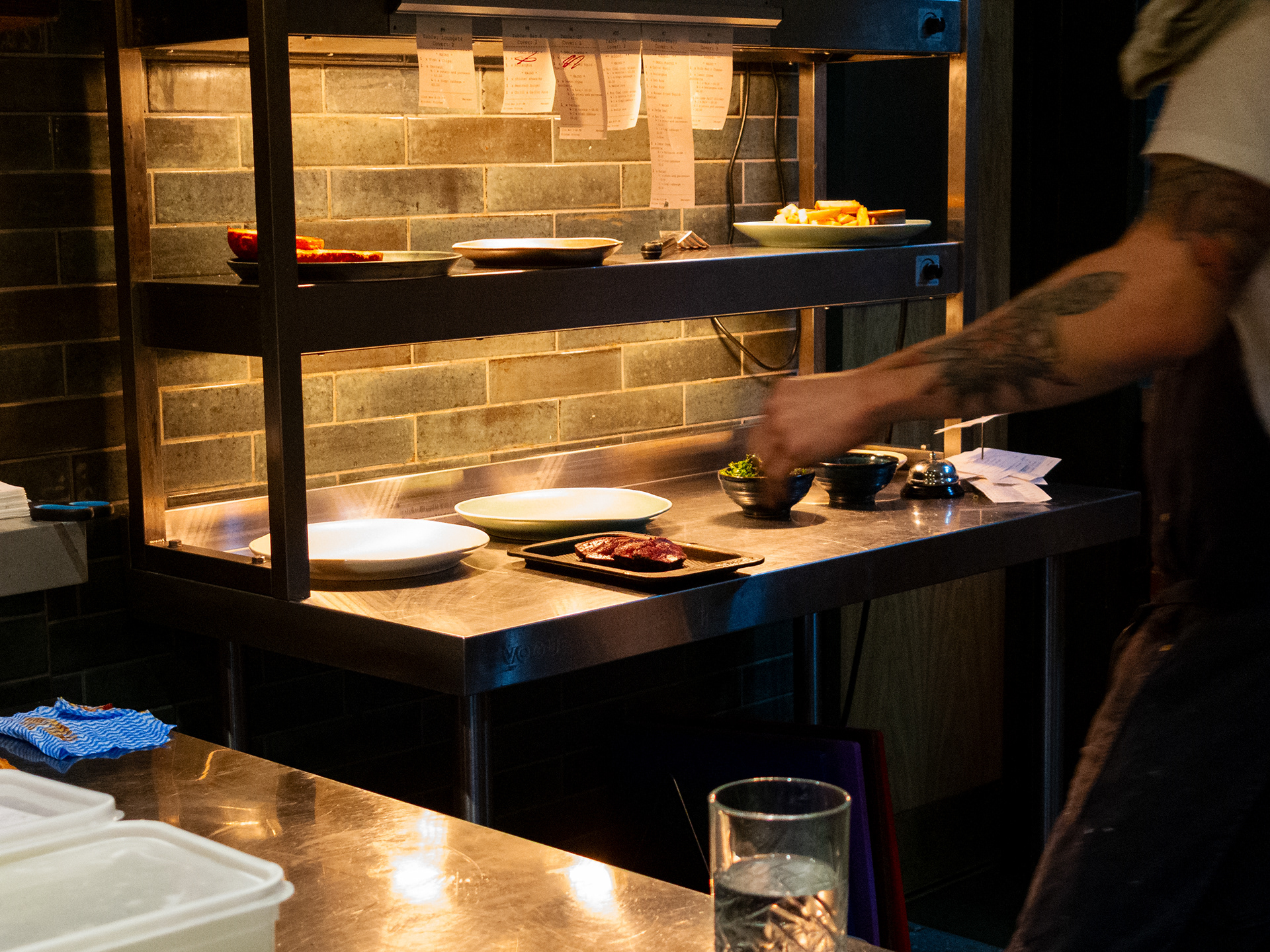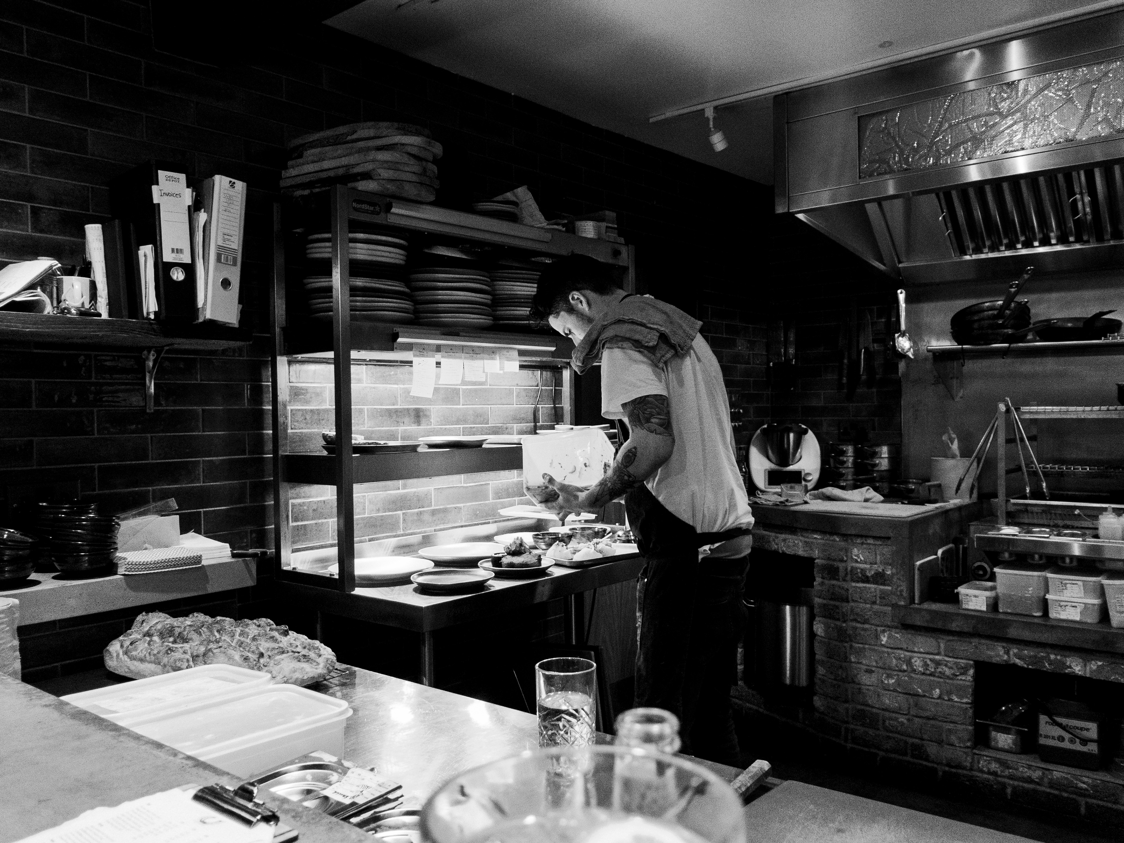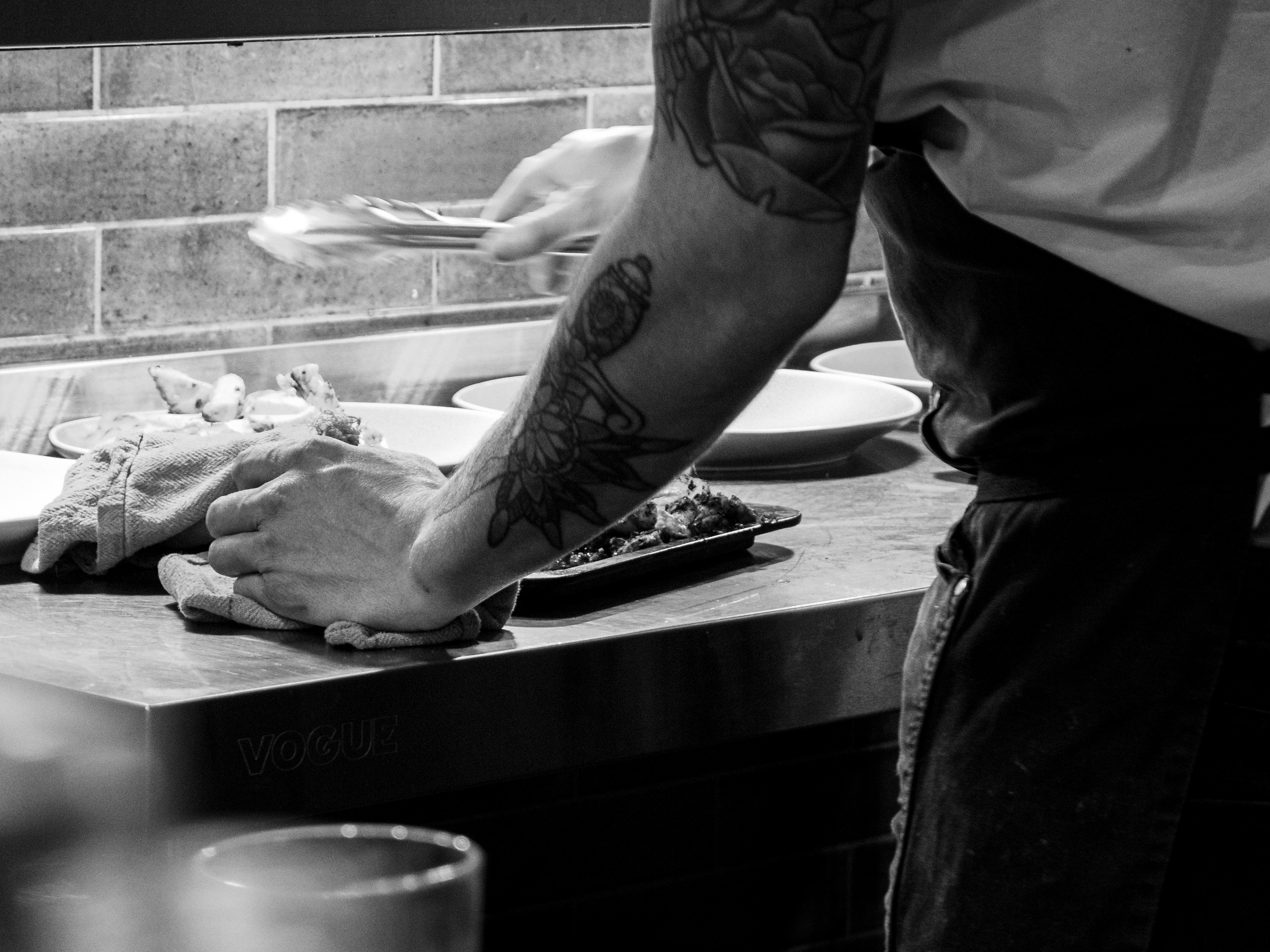 A set taken from my seat at the Chef's table at the Horseshoe, Mildenhall, Wiltshire. Excellent food and a great view of a well run kitchen.