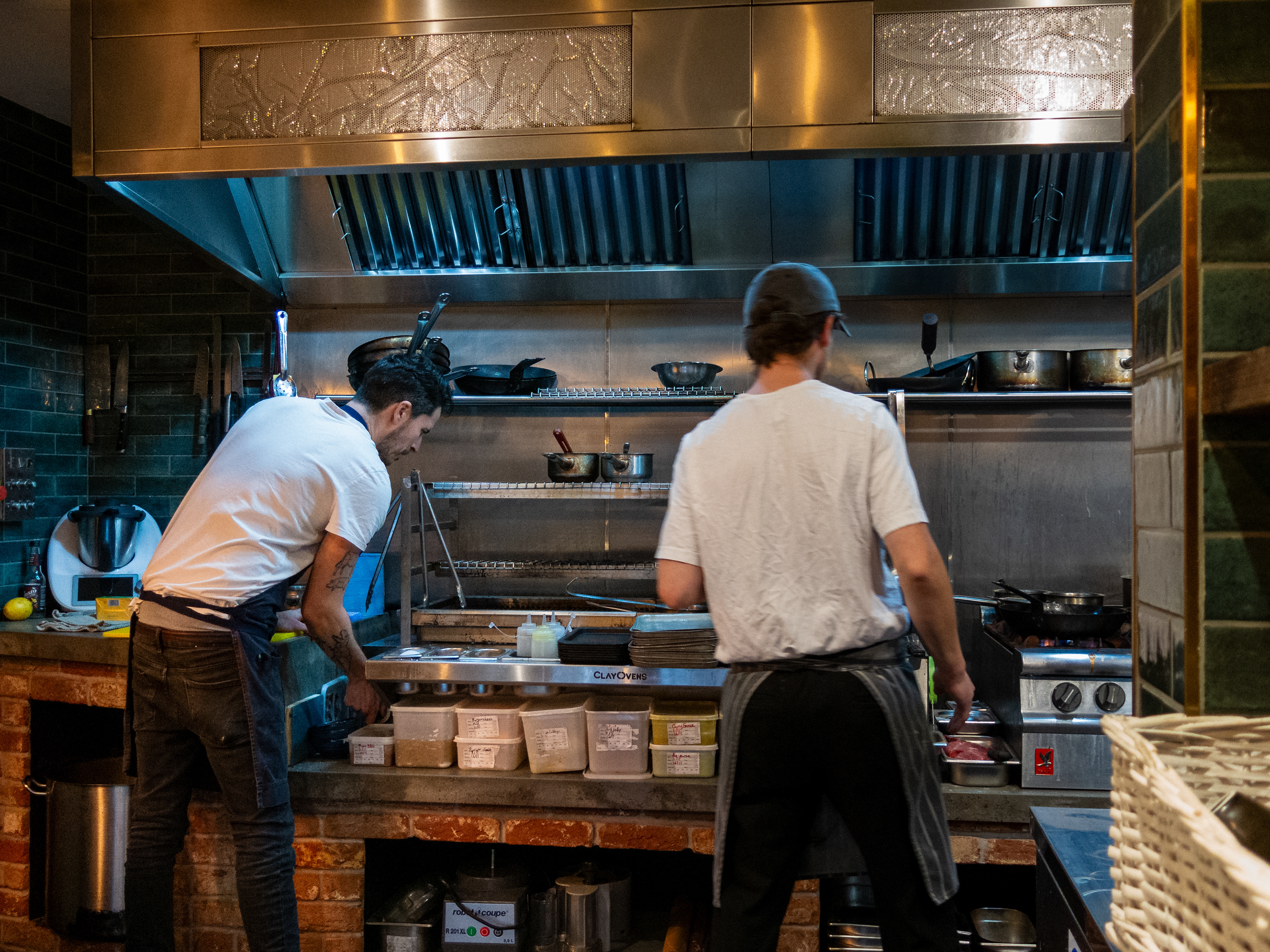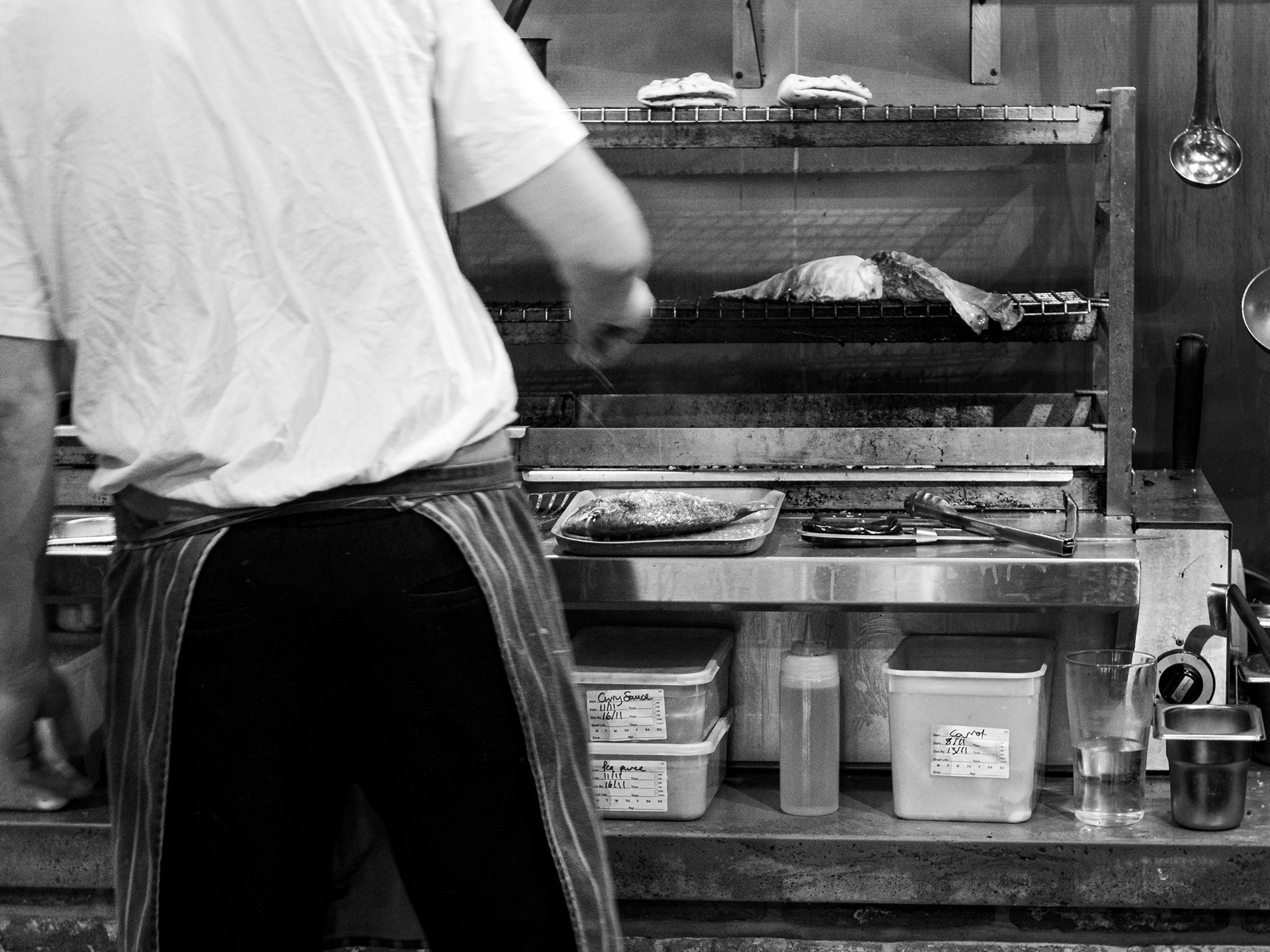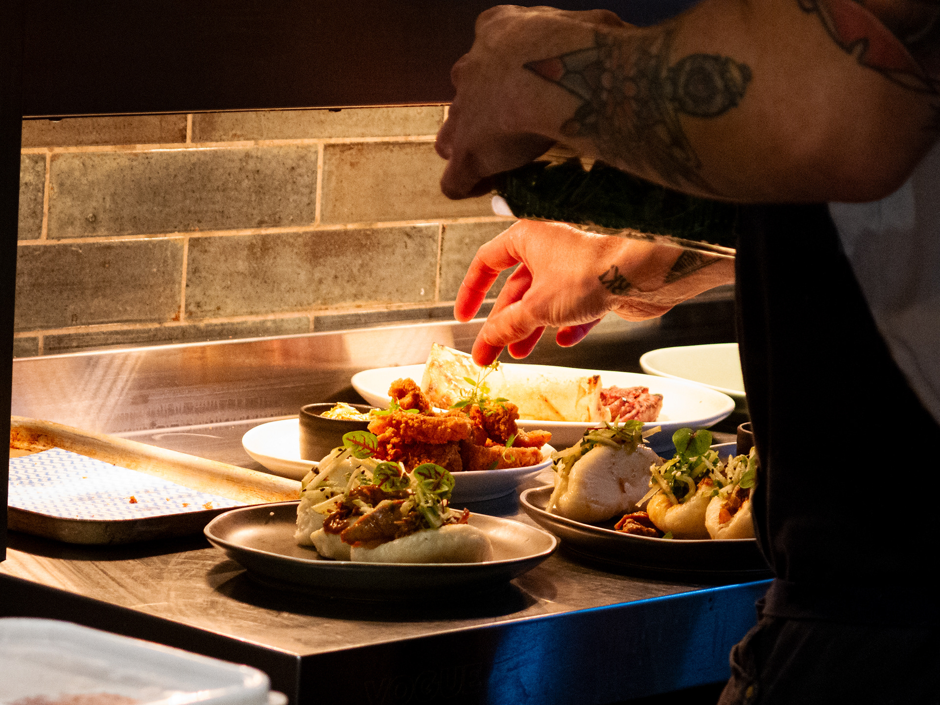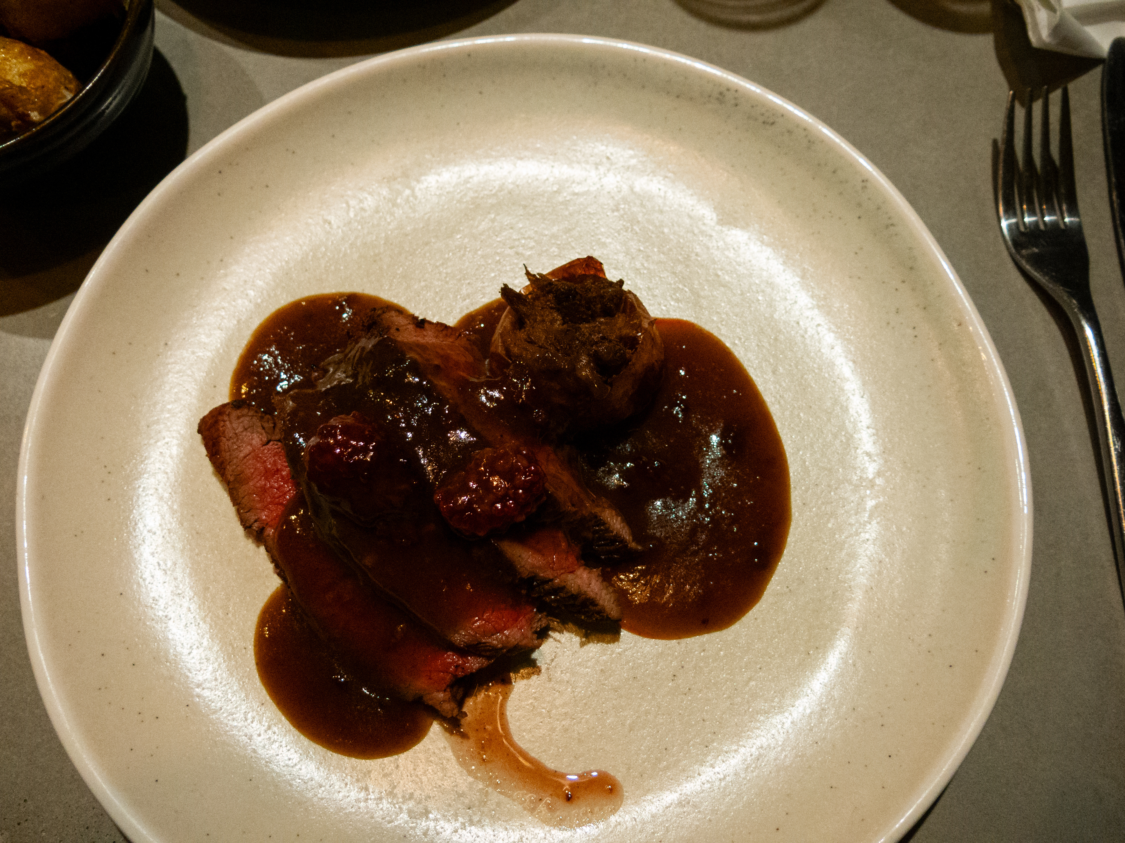 A set taken from my seat at the Chef's table at the Horseshoe, Mildenhall, Wiltshire. Excellent food and a great view of a well run kitchen.